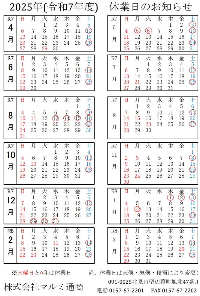 弊社の年間スケジュールを以下の通りご案内いたします。